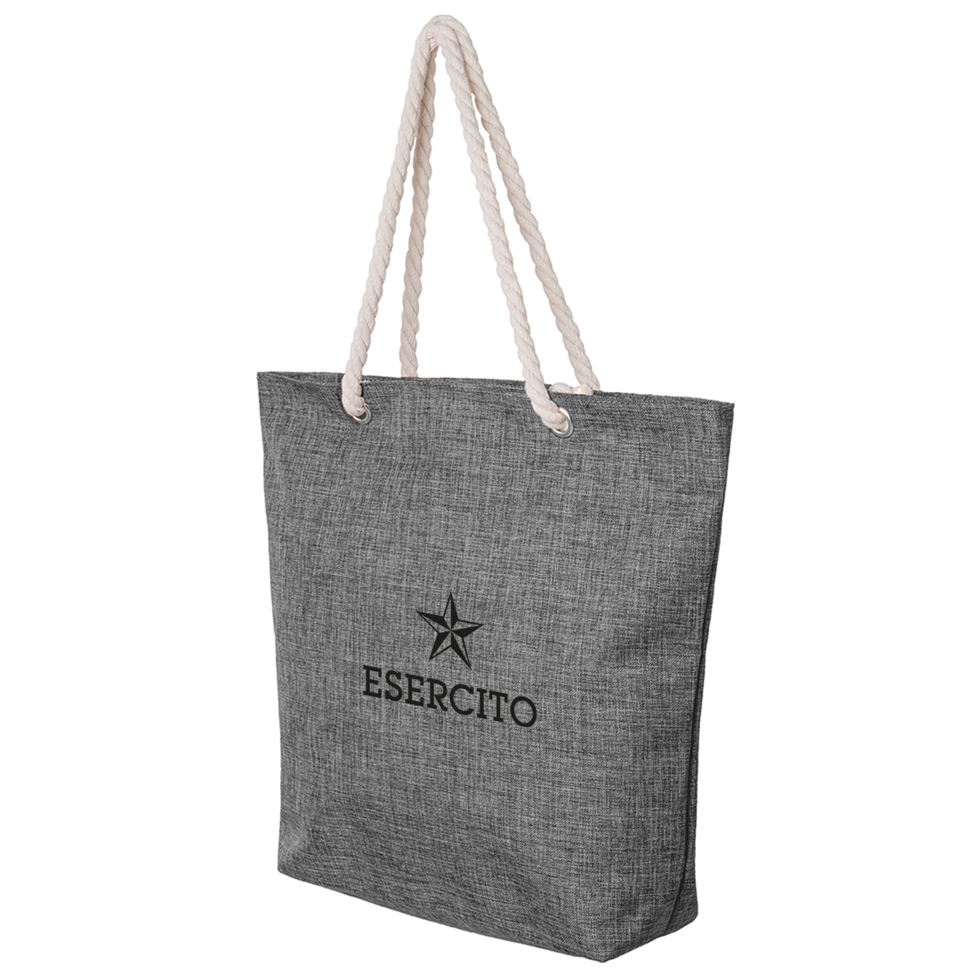 BORSA MARE IN POLIESTERE 600 D CON EFFETTO MELANGE, MANICI IN CORDA, CHIUSURA LAMPO DIMENSIONE 43 X 38 X 12 CM