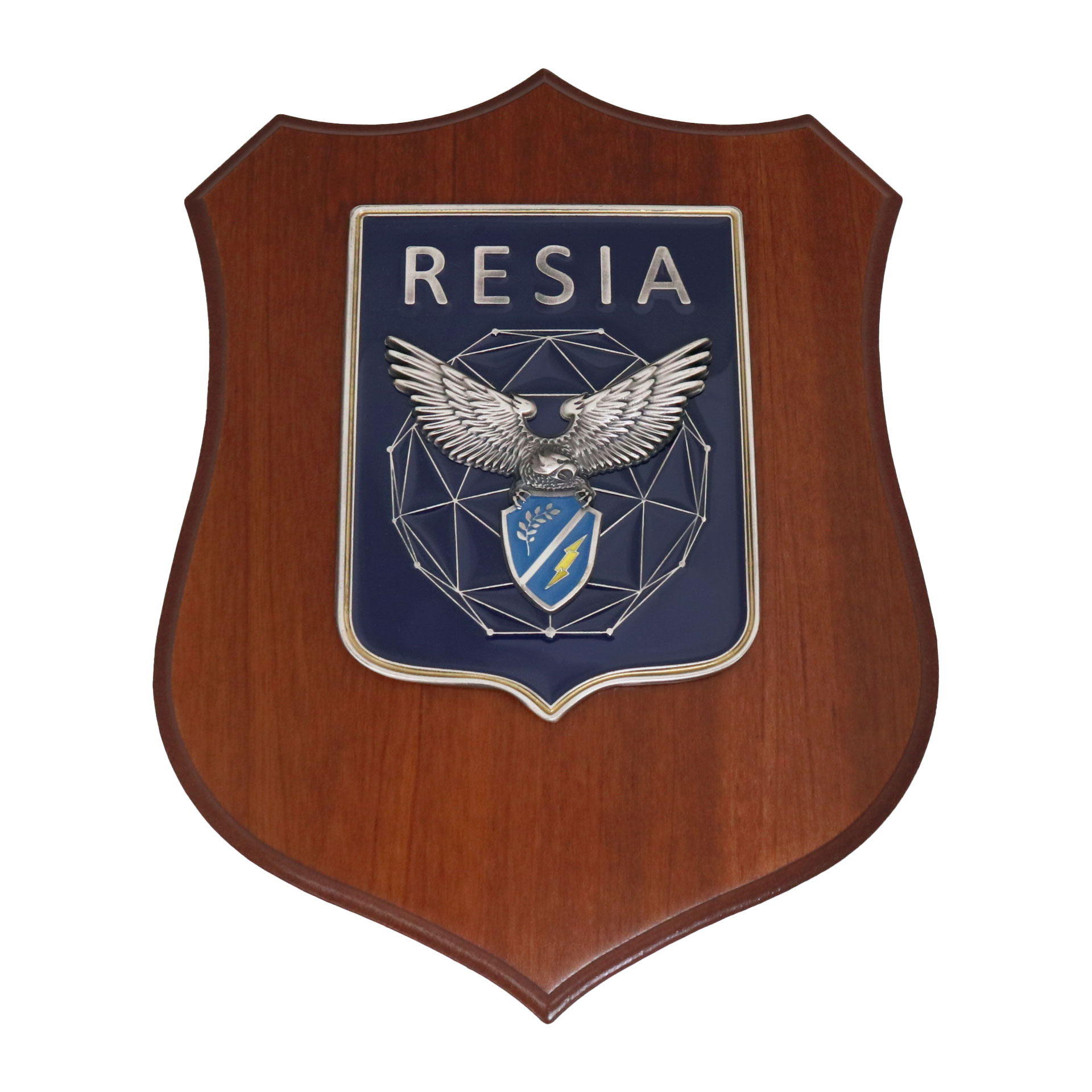 CREST IN METALLO SMALTATO SU BASE IN LENGO CL3 22,50 X 17,50 PERSONALIZZATO CON STEMMA REPARTO SISTEMA INFORMATIVI AUTOMATIZZATI MOBILE