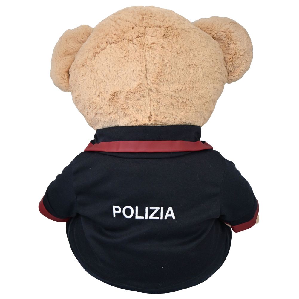 ORSONE PELUCHES SEDUTO H 50 CM, MAGLIETTA RICAMATA CON AQUILA POLIZIA DI STATO E PANTALONCINO