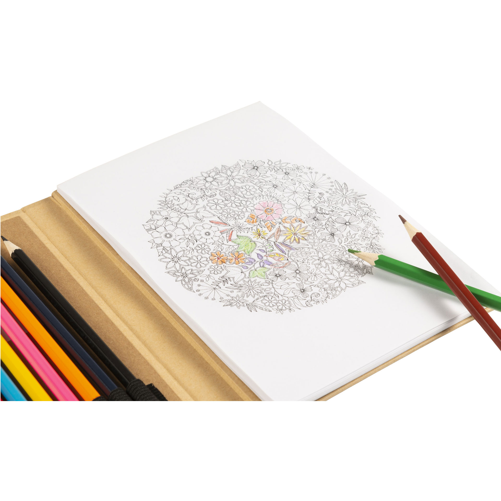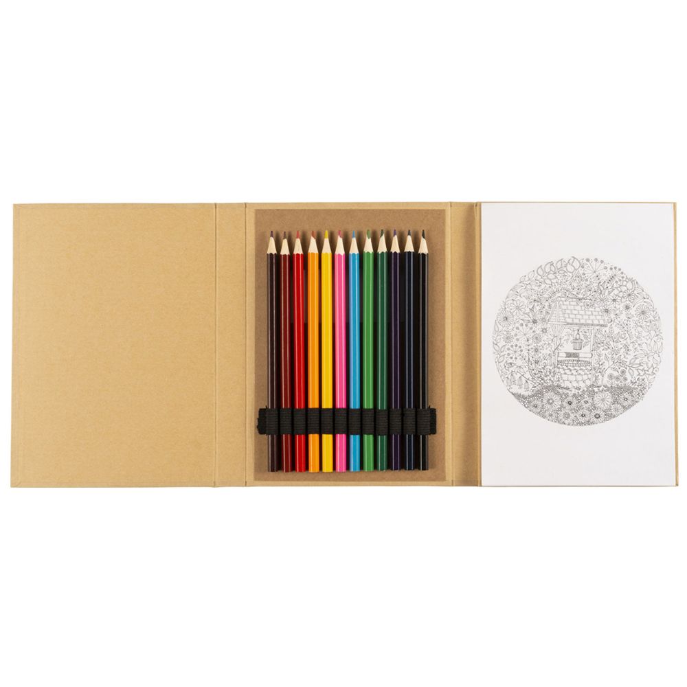 KIT PER COLORARE IN CARTONE, CON 10 IMMAGINI, 40 PAGINE BIANCHE E 12 MATITE COLORATE, DIMENSIONE 21X15X2,5 CM