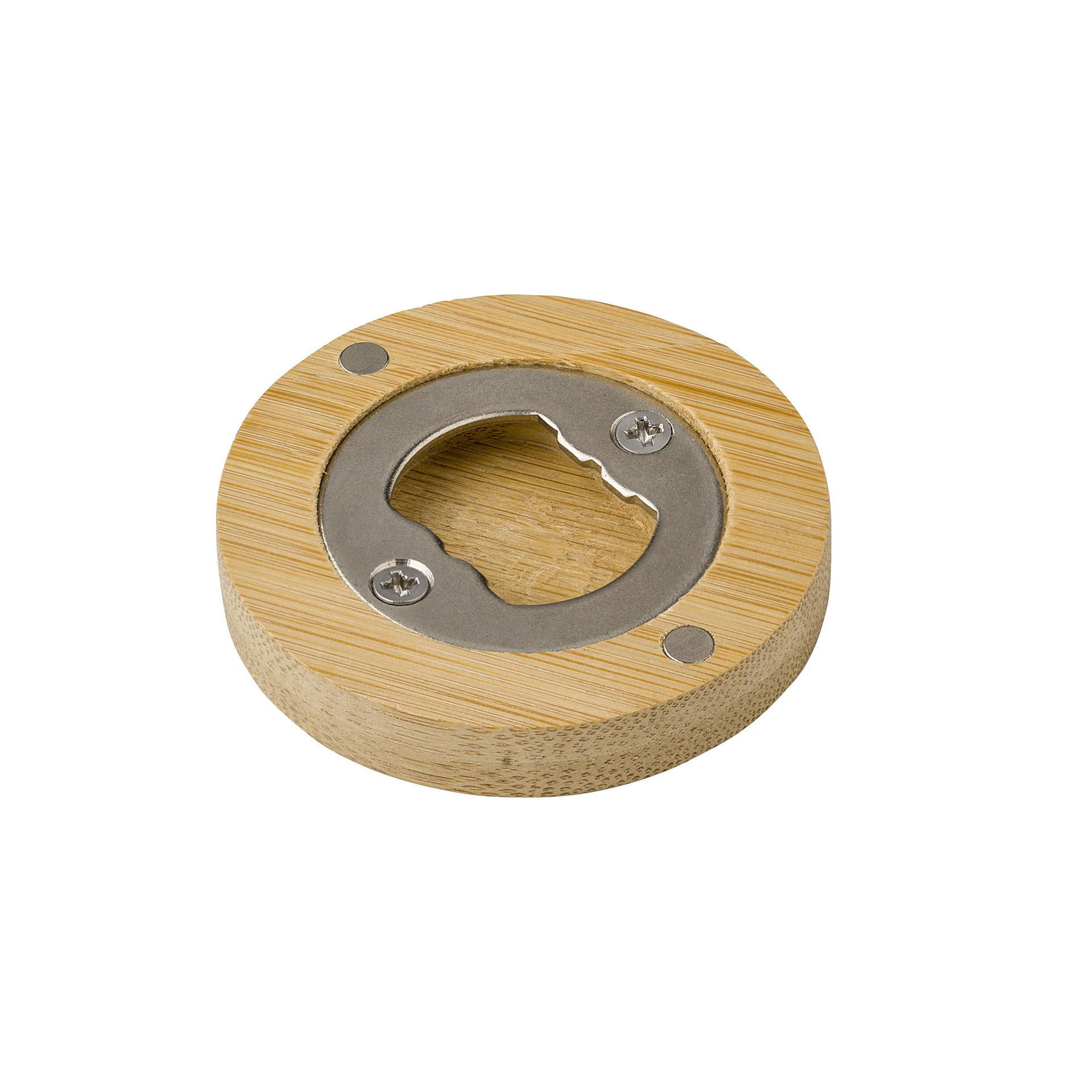 MAGNETE IN BAMBU' CON FUNZIONE APRIBOTTIGLIE INTERNO EVITANDO DI GRAFFIARE LA SUPERFICIE DIMENSIONE DIAMETRO 6 CM