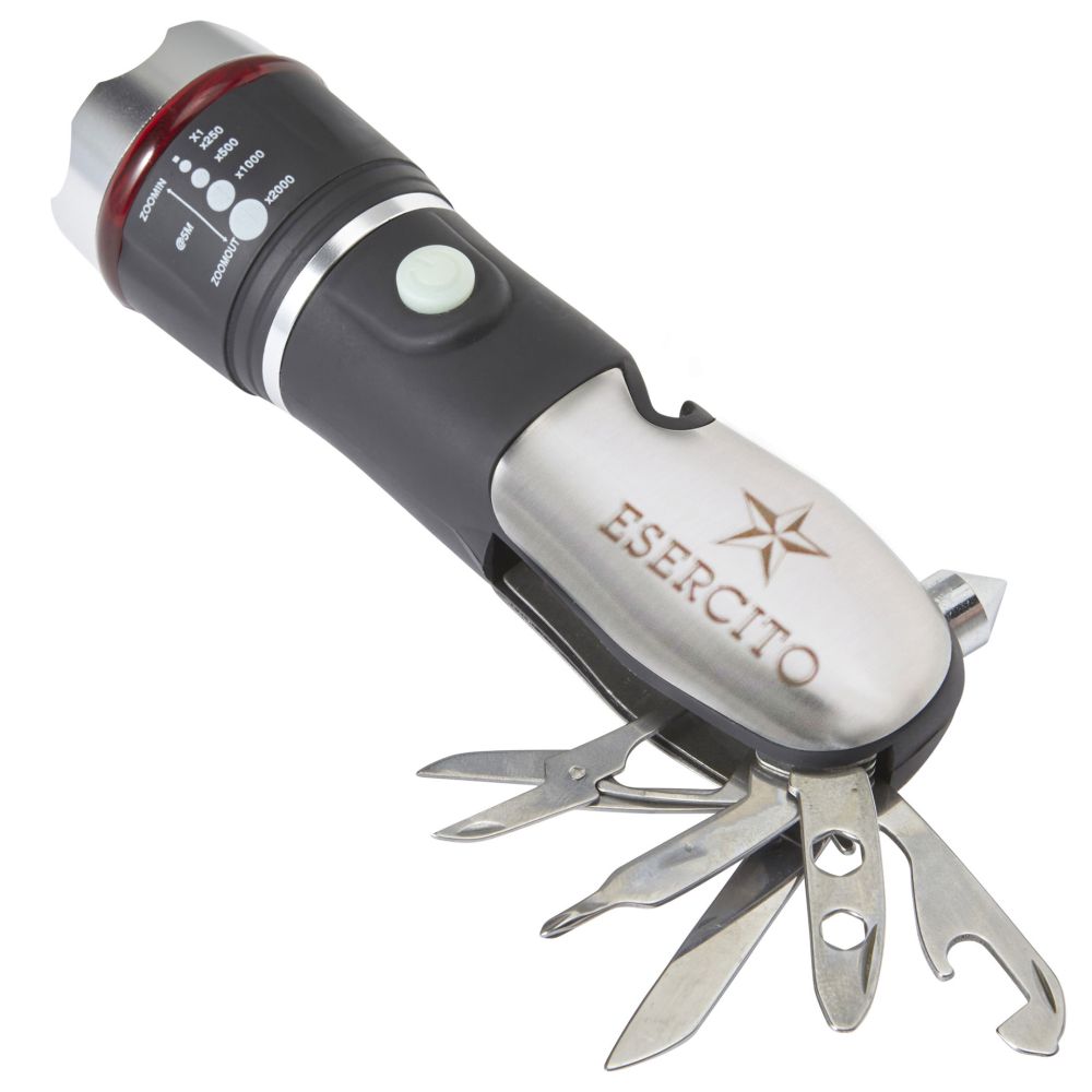MINITORCIA MULTIFUNZIONE NERA E ARGENTO