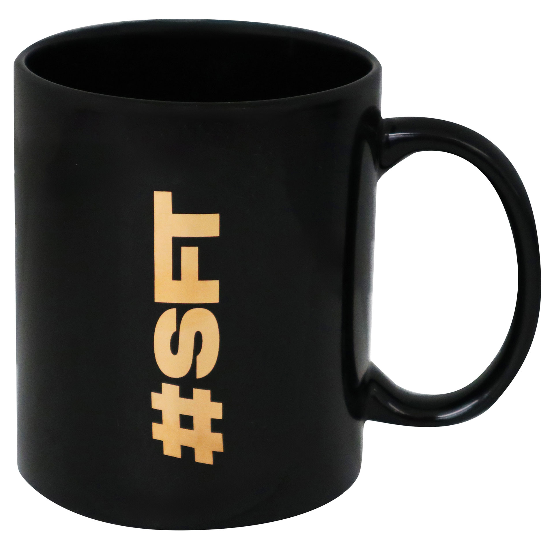 MUG IN CERAMICA NERA CON LOGO SIMIL ORO CON SCRITTA SFT