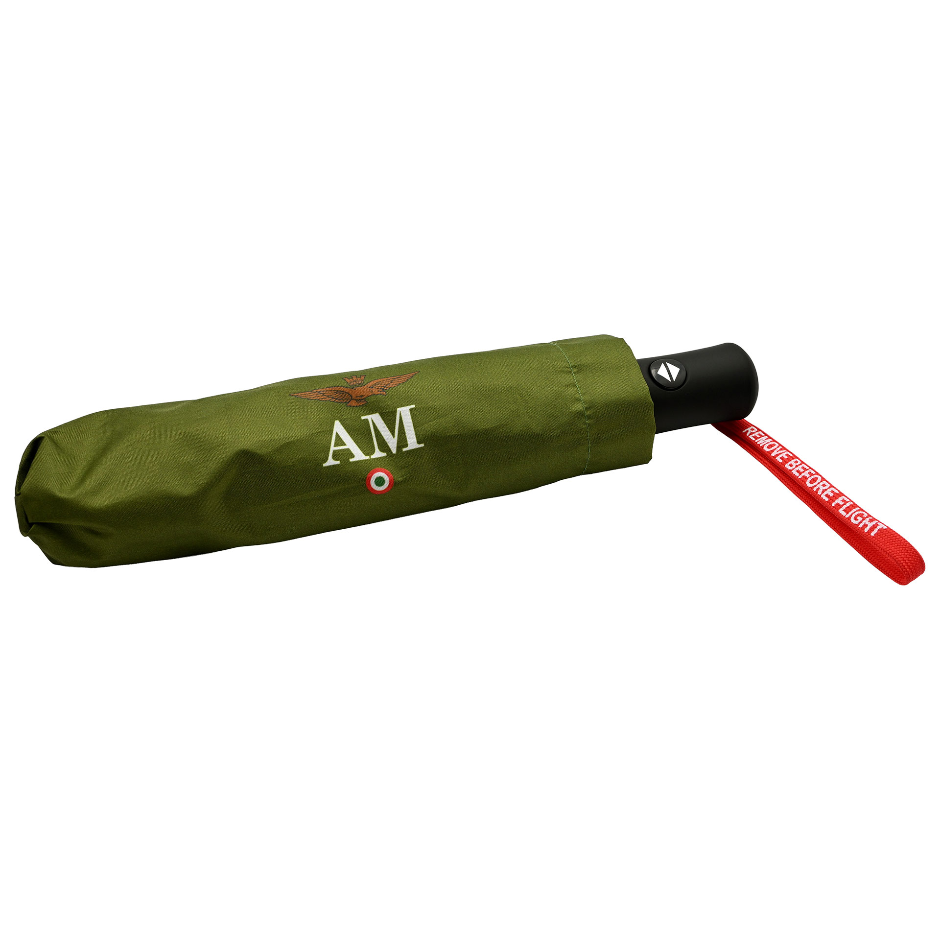 OMBRELLO AUTOMATICO TASCABILE VERDE DIMENSIONE 94 CM X H 55 CM CHIUSO 29 CM LOGO A.M. CON AQUILA E LACCIO REMOVE BEFORE FLIGHT