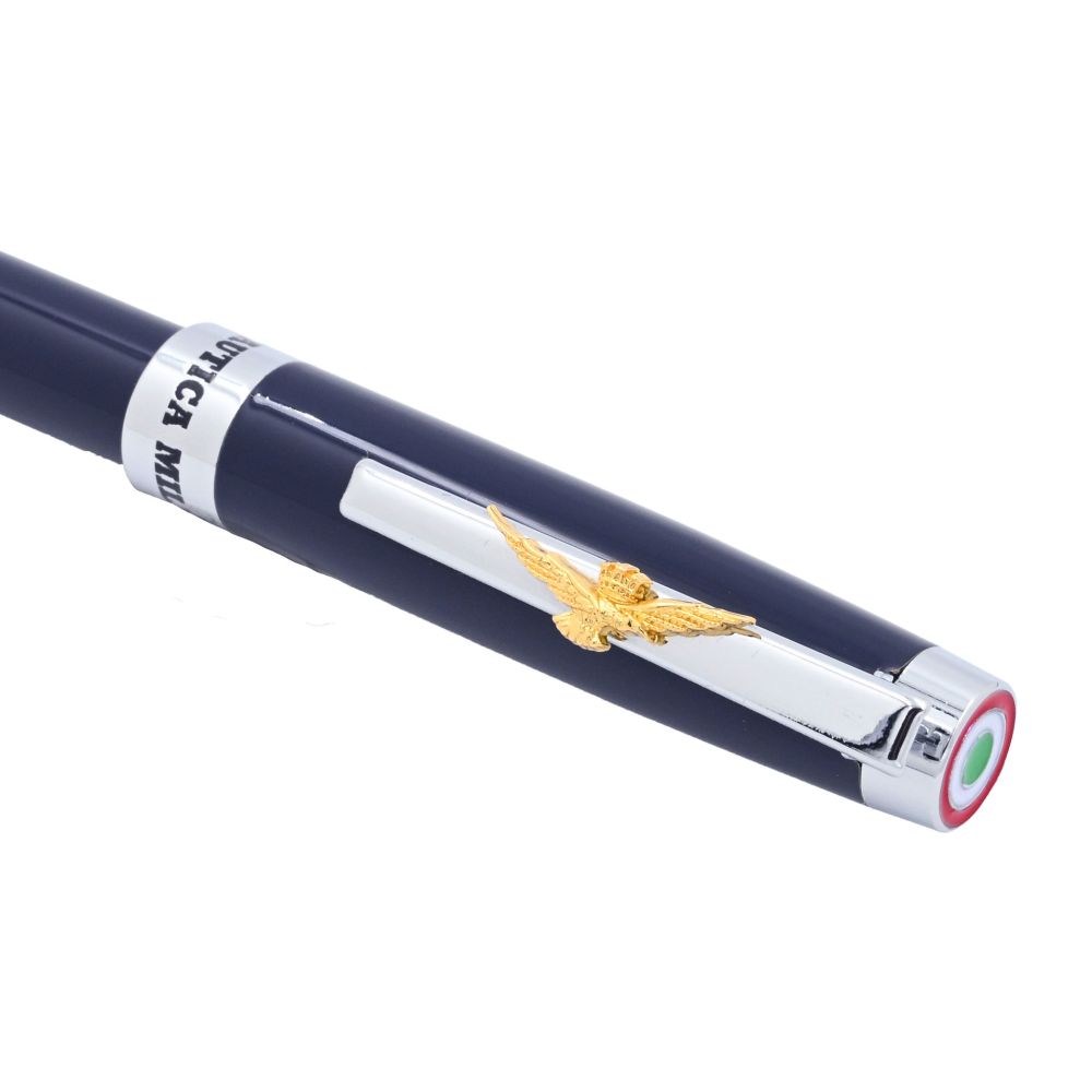 PENNA ROLLER BLU NAVY IN METALLO, INCHIOSTRO NERO, CON AQUILA DORATA IN 3D IN ASTUCCIO RIGIDO