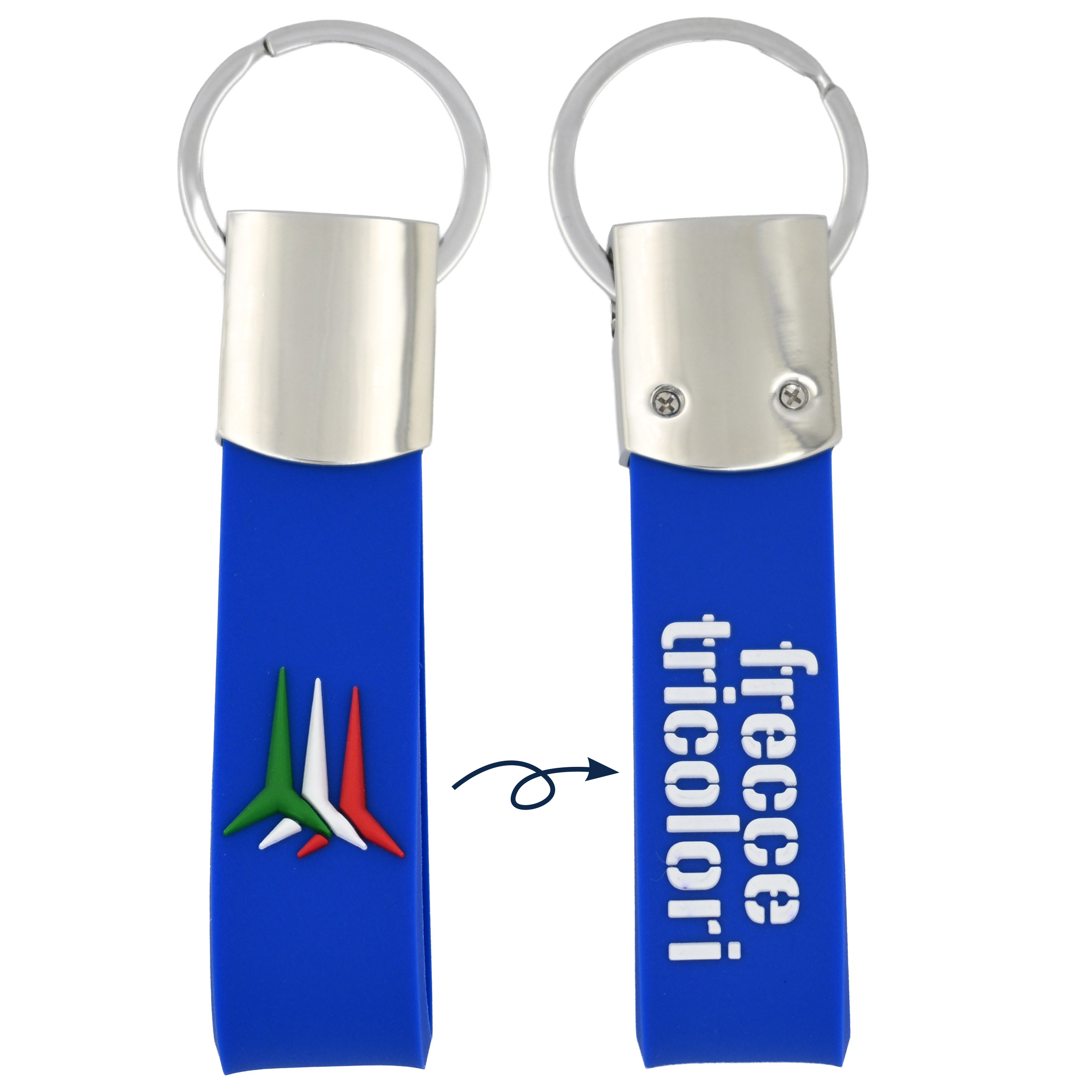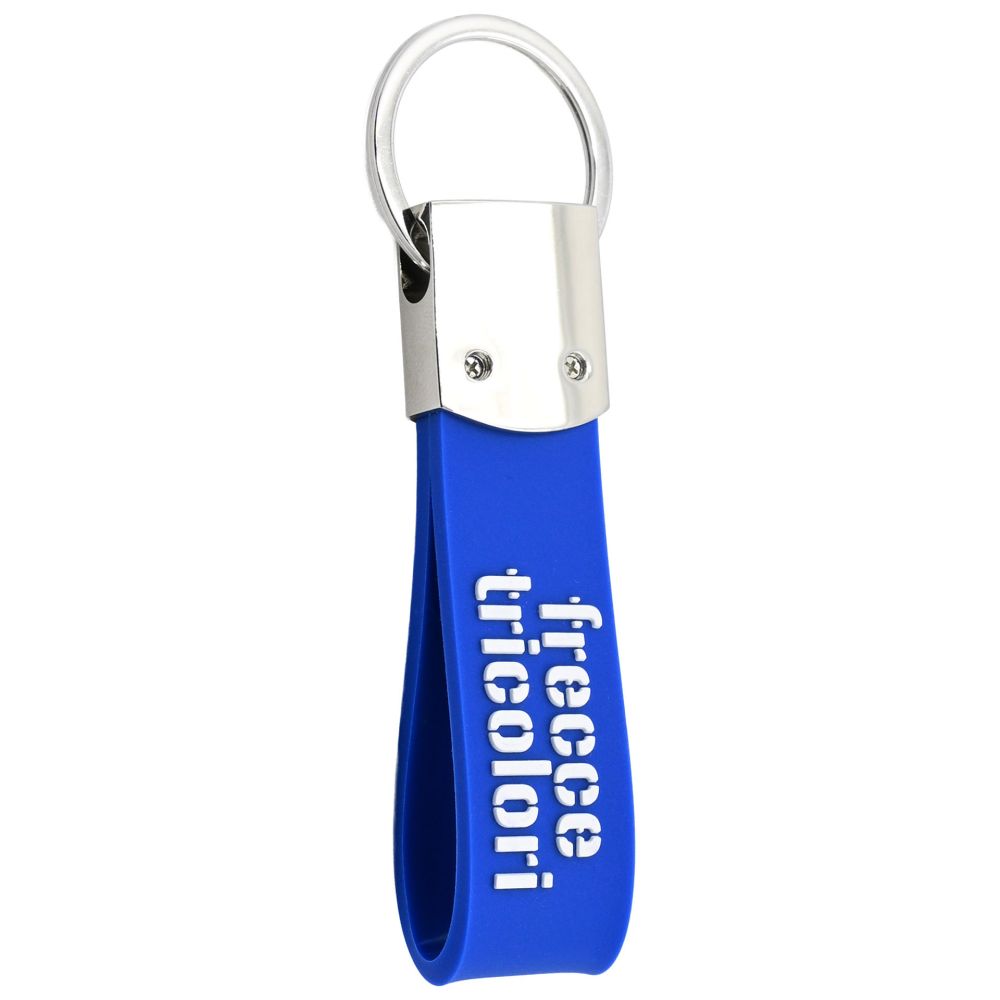 PORTACHIAVI IN METALLO E GOMMA CON IN RILIEVO LOGO F.T. SUL FRONTE E SCRITTA FRECCE TRICOLORI SUL RETRO