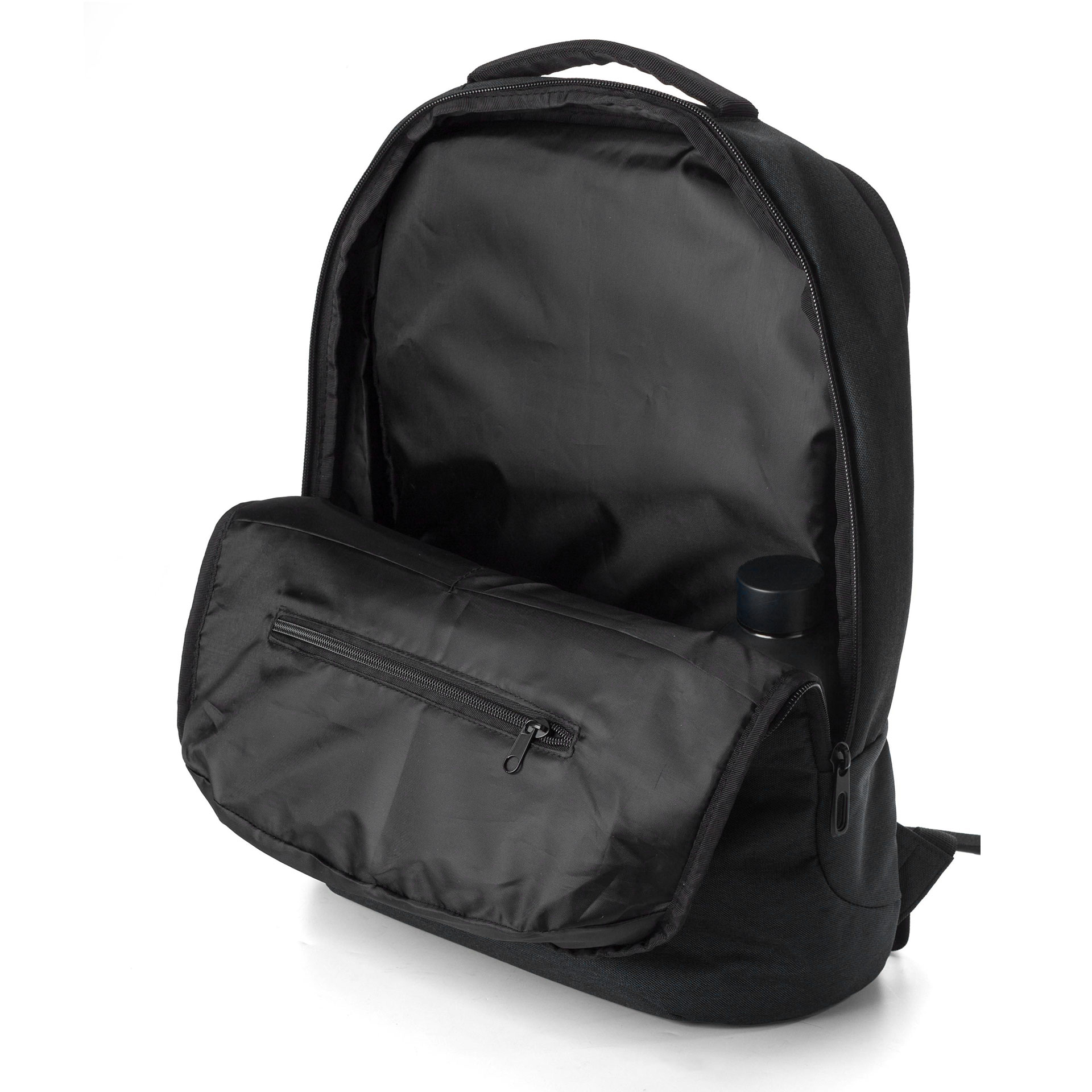 ZAINO PORTACOMPUTER DA 15 POLLICI, TASCHE CON CHIUSURA LAMPO SUL LATO FRONTALE INFERIORE, AMPI SCOMPARTI INTERNI CON CHIUSURA LAMPO, INCLUSO VANO PER IL LAPTOP, SCHIENALE IMBOTTITO RINFORZATO, PASSANTE PER IL TROLLEY, IN POLIESTERE 600 D DIMENSIONE 33 X 17 X 45 CM