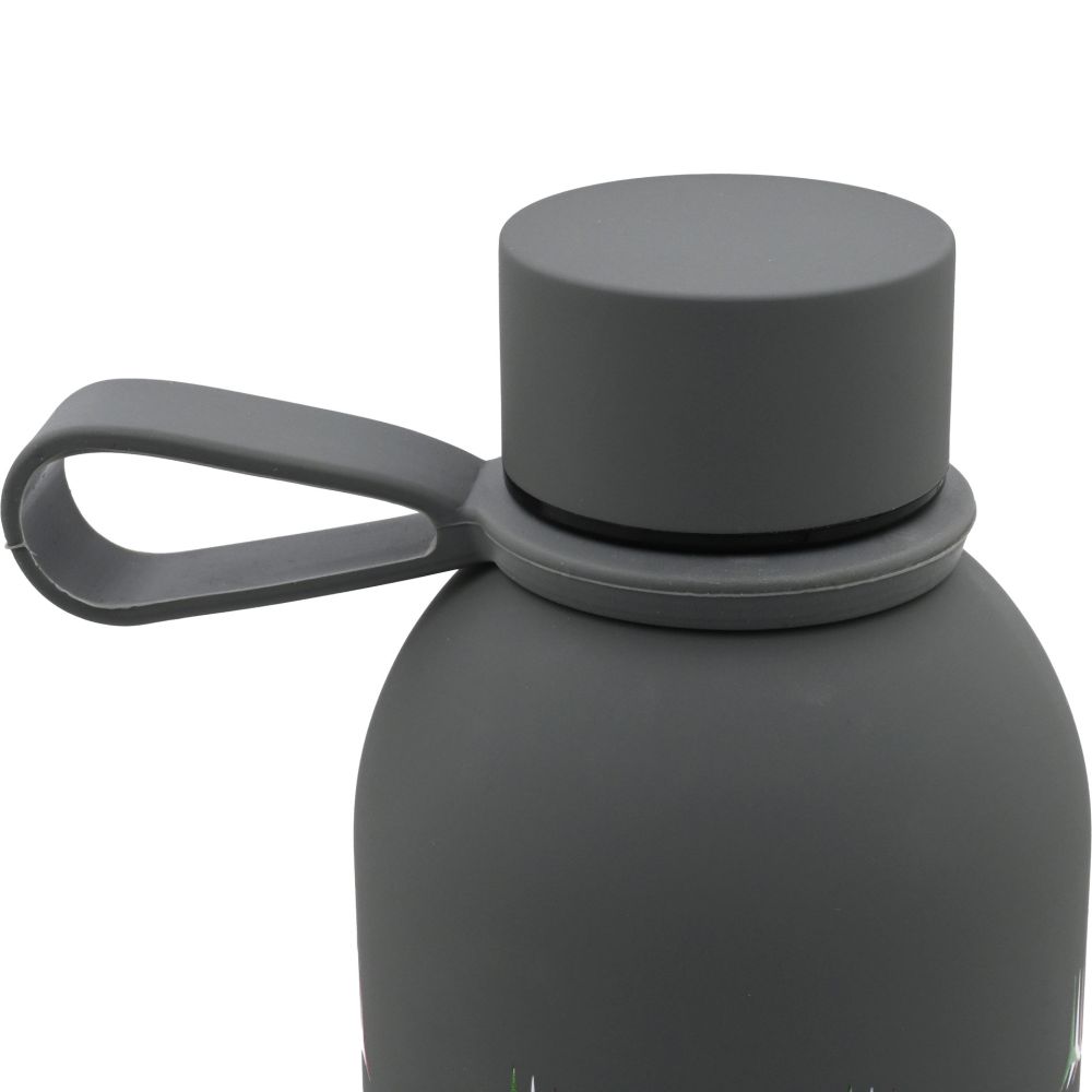 BORRACCIA GRIGIA IN ACCIAIO INOX 304 RICICLATO, DOPPIA PARETE, FINITURA GOMMATA, MANTIENE 8 ORE IL CALORE E 12 ORE IL FREDDO DIMENSIONE 7,5 X 23,0 CM CAPACITA' 500 ML TEXTURE F.T.