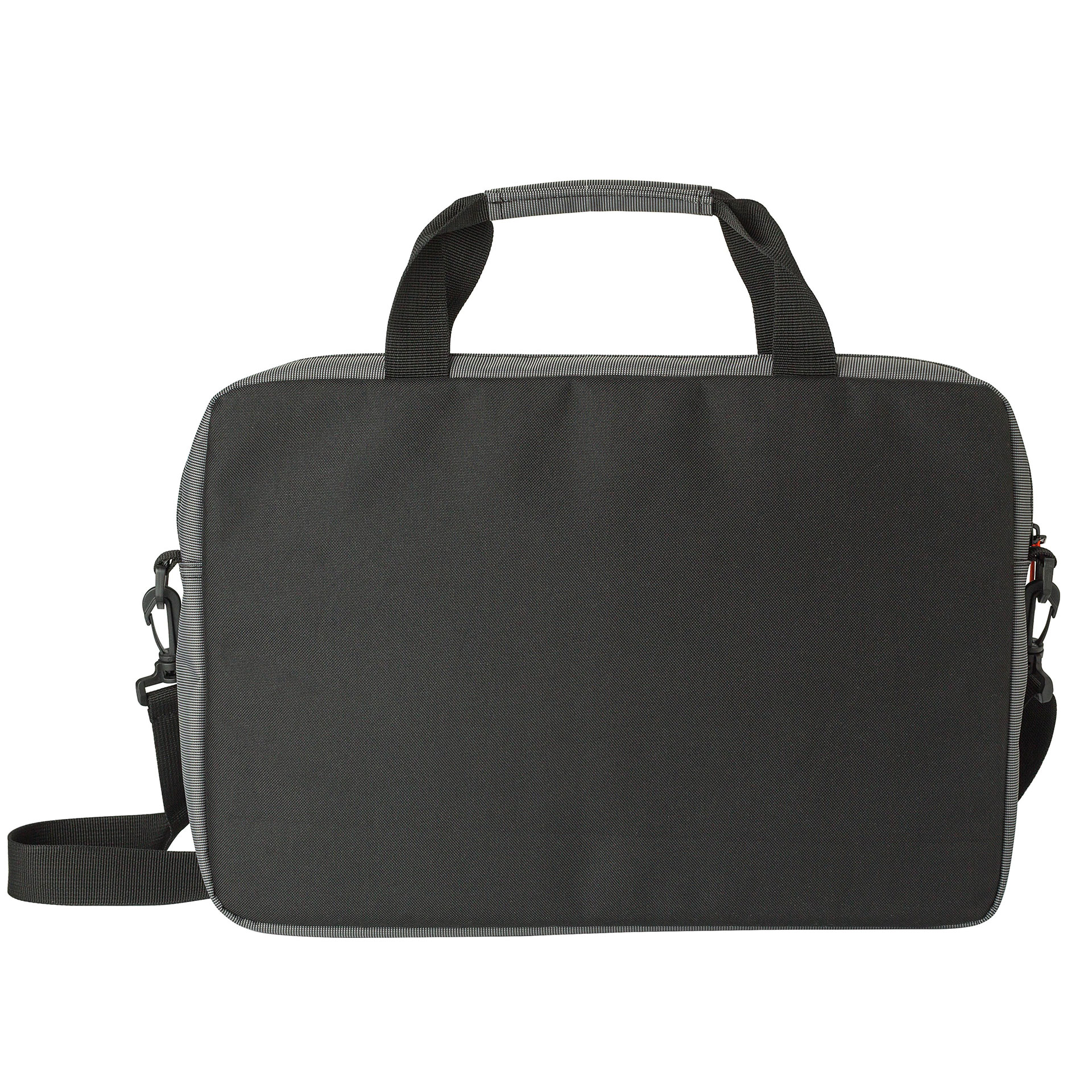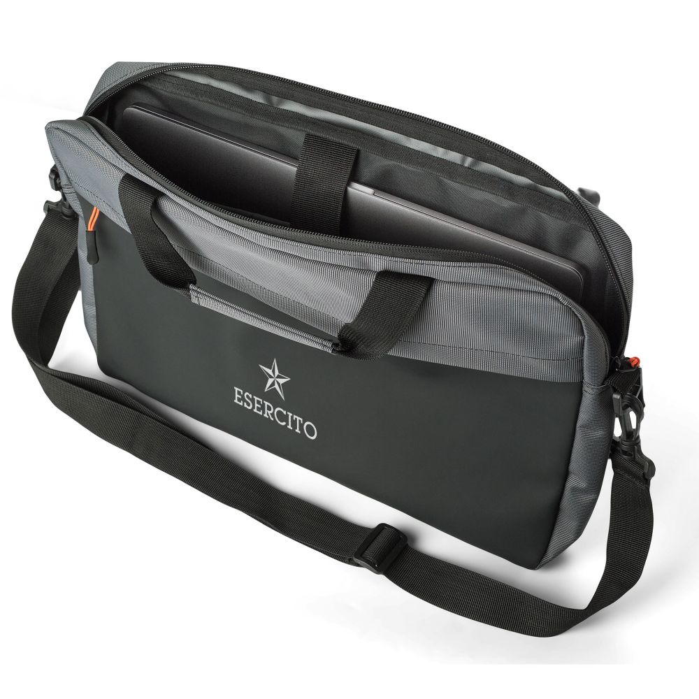 BORSA PER LAPTOP IN POLIESTERE 500 D BICOLORE, ADATTO PER LAPTOP DA 15 POLLICI, AMPIO SCOMPARTO IMBOTTITO CON CHIUSURA LAMPO, MANICI CORTI, TRACOLLA REGOLABILE DIMENSIONE 40 X 28 X 5 CM