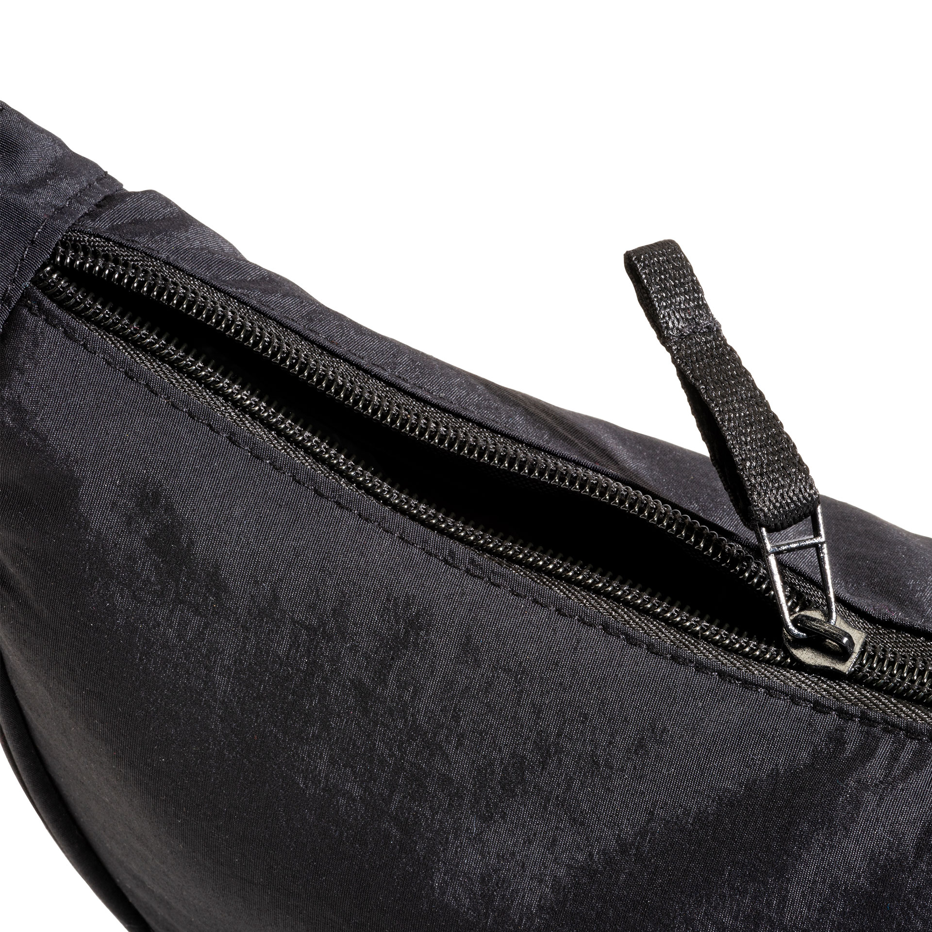BORSA ROTONDA NERA IN NYLON CON TRACOLLA REGOLABILE, CHIUSURA CON ZIP DIMENSIONE 30 X 16 X 8 CM