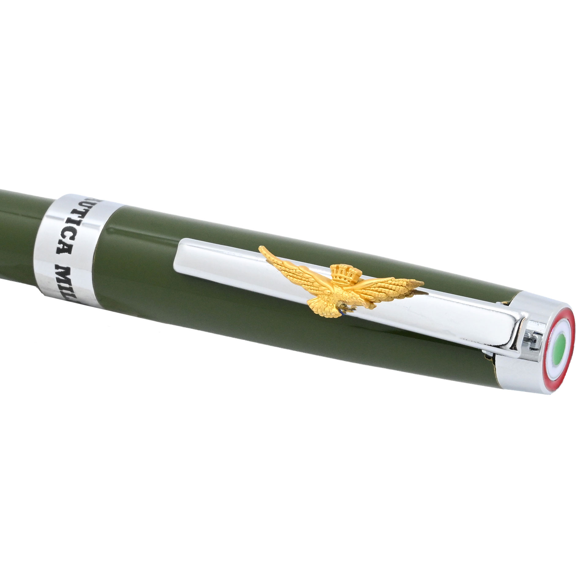 PENNA ROLLER VERDE IN METALLO, INCHIOSTRO NERO CON AQUILA DORATA A.M. IN 3D IN ASTUCCIO RIGIDOO