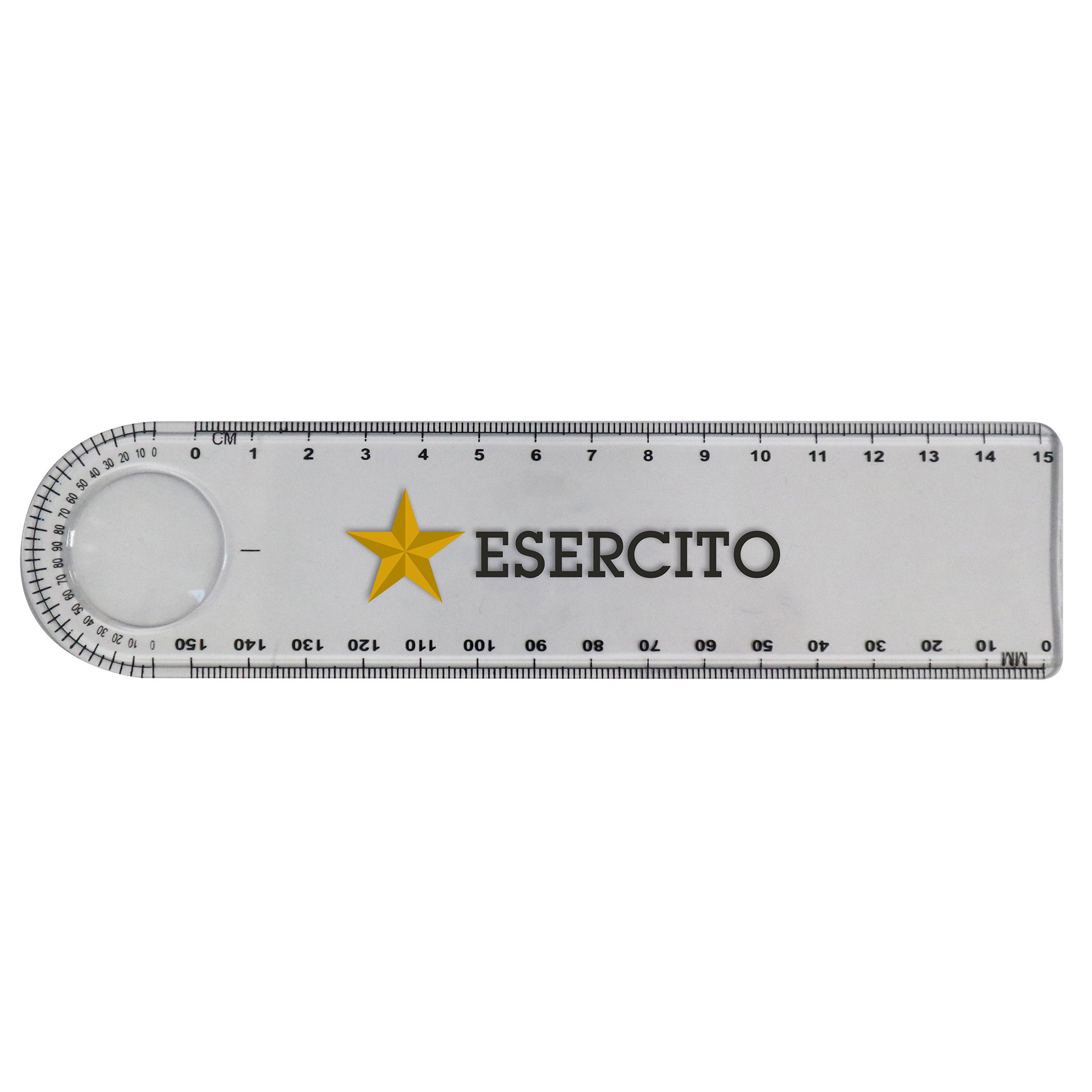 RIGHELLO TRASPARENTE CON LOGO ESERCITO 15 CM CON LENTE D'INGRANDIMENTO