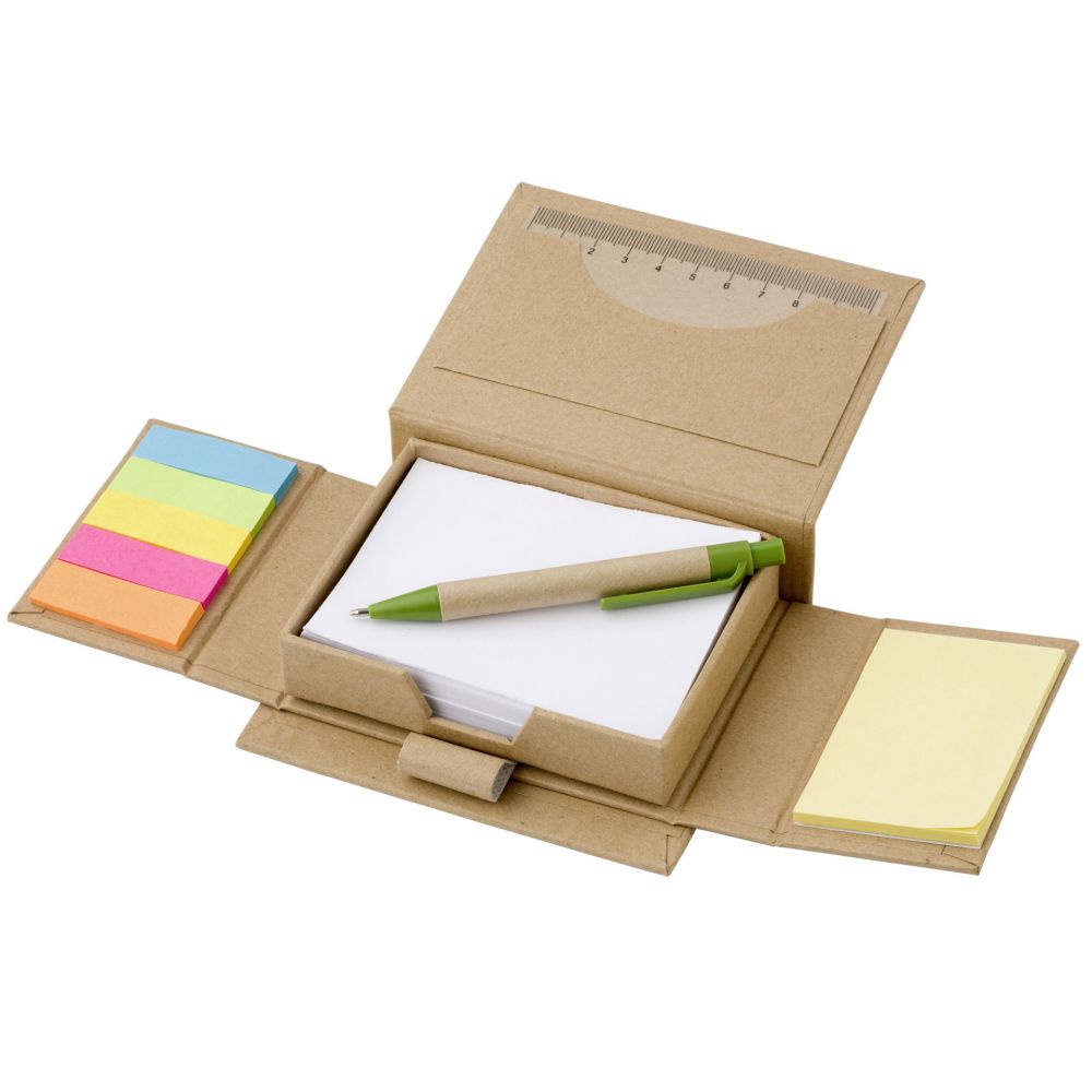 SET MEMO IN CARTONE, 160 MEMO STICK IN VARI COLORI, RIGHELLO, PENNA A SFERA CON CORPO E CLIP IN CARTONE, REFILL BLU, DIMENSIONI 12,1X10,2X3,4 CM